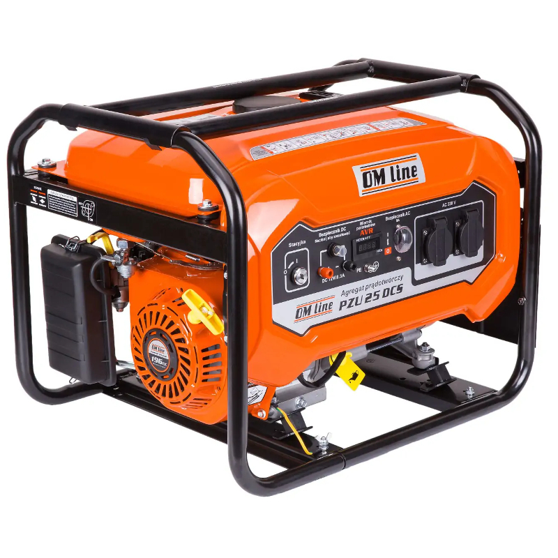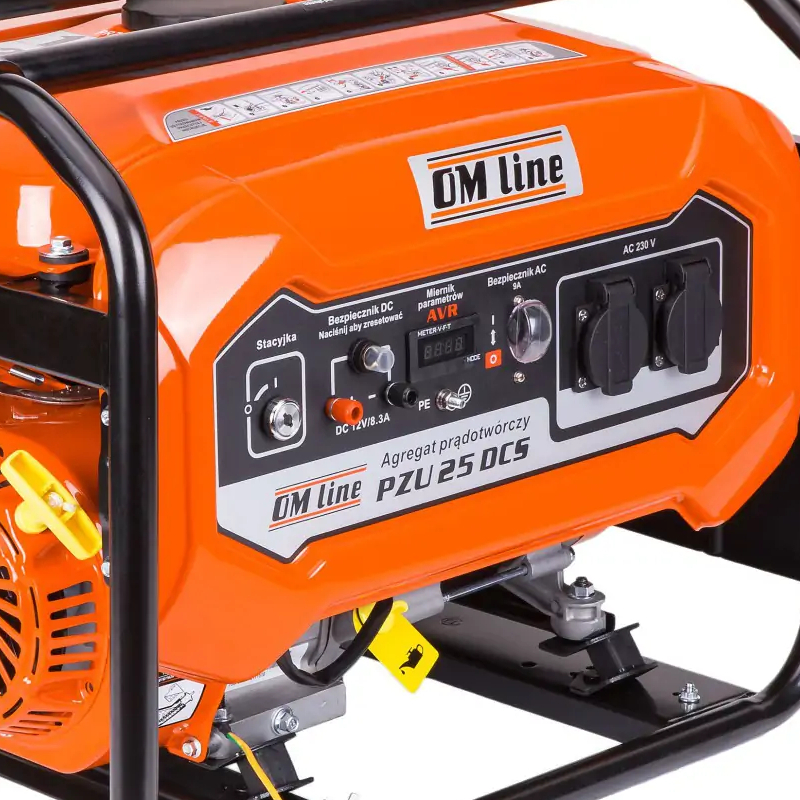 Agregat spalinowy Oleo-Mac PZU25DCS to kompaktowy generator prądu, który łączy solidność wykonania z nowoczesnymi rozwiązaniami technicznymi. Wydajny silnik Loncin LC168F-2 (196 cm³) zapewnia moc znamionową 2,0 kW i maksymalną 2,2 kW, co umożliwia zasilanie różnorodnych urządzeń elektrycznych. Zastosowany system AVR (Automatic Voltage Regulation) dba o stabilność napięcia, eliminując ryzyko skoków, dzięki czemu agregat jest bezpieczny także dla wrażliwej elektroniki. Duży zbiornik paliwa o pojemności 15 litrów pozwala na długotrwałą, nieprzerwaną pracę. Prosty w obsłudze i niezawodny, świetnie sprawdzi się jako awaryjne źródło energii lub mobilny generator na budowie.