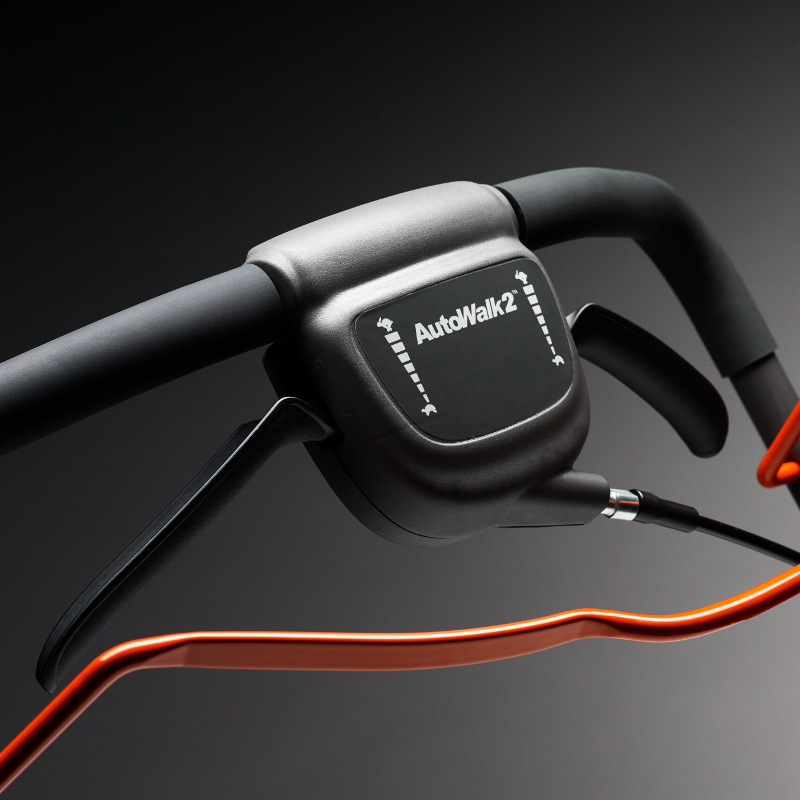 - AutoWalk 2 — dwuręczne sterowanie prędkością umożliwia płynną regulację szybkości, co zwiększa komfort pracy i ułatwia koszenie wokół przeszkód.