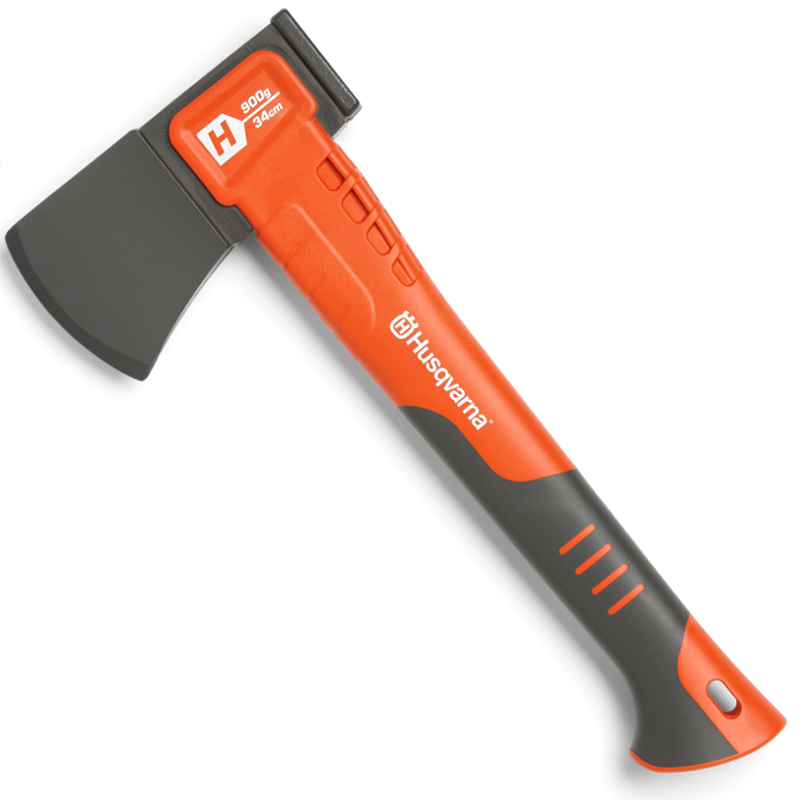 Mały toporek do drewna na opał, pracy w ogrodzie i trekkingu. Trzonek siekiery Husqvarna H900 wzmacniany włóknem PA poprawia trwałość i wytrzymałość. Toporek ma nieprzywierającą powłokę, która zmniejsza tarcie i ułatwia pracę w drewnie. Miękki, ergonomiczny uchwyt siekiery poprawia bezpieczeństwo. Środek ciężkości umiejscowiony blisko głowicy daje idealną równowagę i rozłożenie wagi. Toporek posiada funkcję młotka dla łatwego i skutecznego używania klinów (nie dotyczy klinów stalowych). Kolor siekiery H900 jest utrzymany w kolorach Husqvarny.
